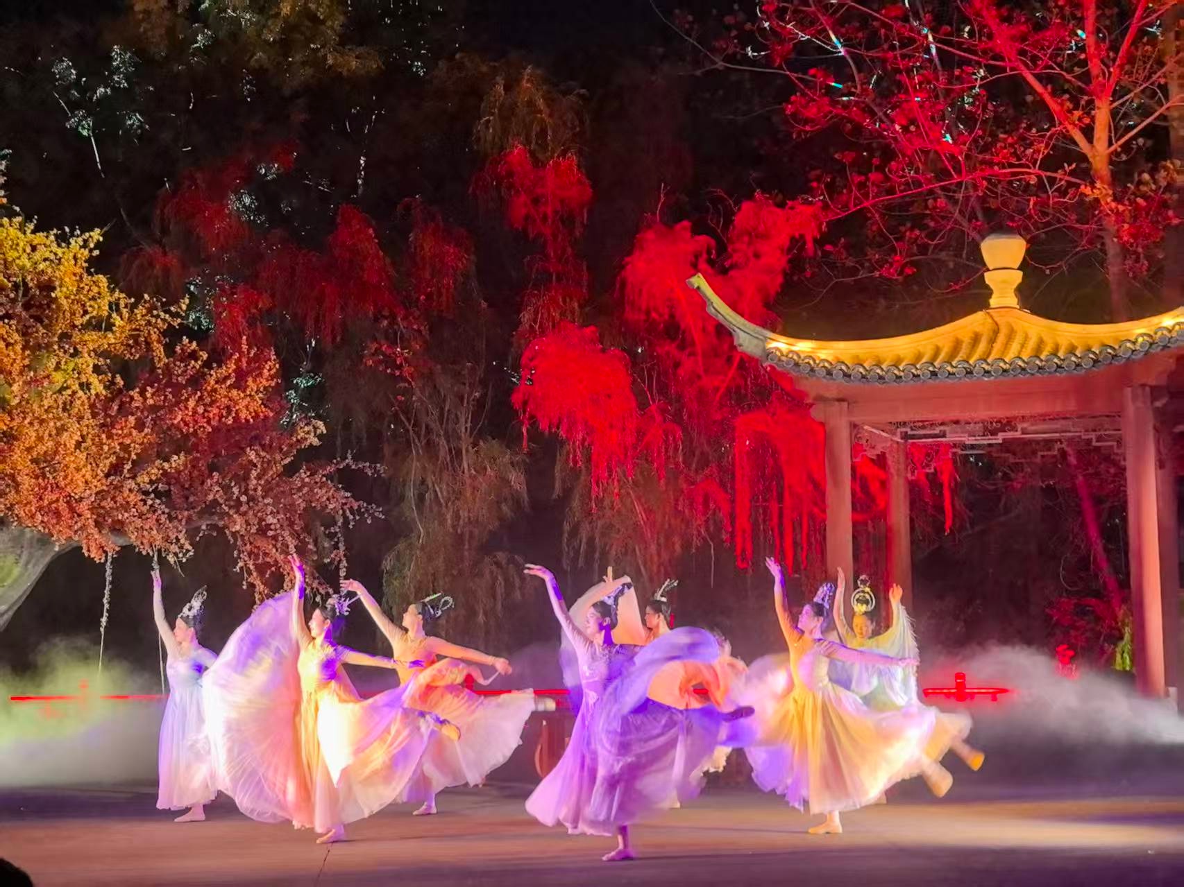 同样极具人气的还有云梦祥云湾文旅街区。该街区依托227栋古建群,运用雾森系统、全息投影、灯光矩阵等技术,打造“光影+古韵”的夜游幻境。旱街雾纱笼飞檐,水街灯河映长亭,形成众多打卡点,日均吸引游客1万人次,有效带动了街区内餐饮、文创等消费。