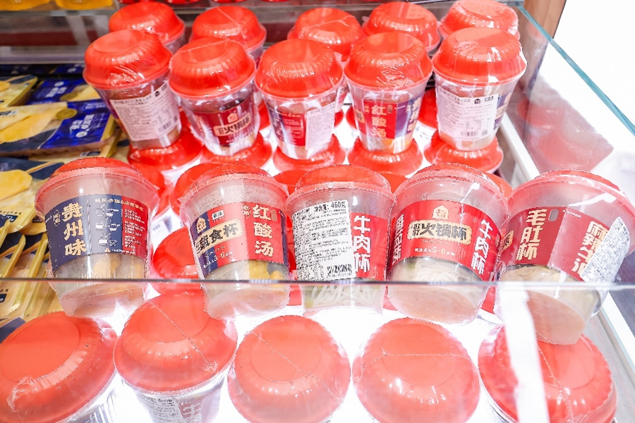 在包装方面,盒马与专业的包材供应商合作,为盒马火锅杯独家定制了可微波加热的包材,并搭配防烫隔热杯套和餐具,适配多种场景。同时,盒马将冷冻方便面所采用的急速冷却工艺应用于火锅食材,将用淡盐水漂煮过的食材快速降温,既能锁住食材的原味与口感,也便于消费者后续加热入味。