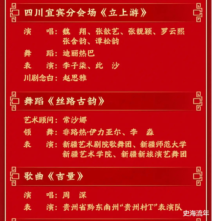 安徽合肥分会场的《合韵满江淮》,黄轩、陈晓、马思纯等演绎水墨舞蹈与黄梅戏,低空飞行器列阵腾空,科技之光映照徽风皖韵。四川宜宾分会场的《立上游》,以长江为幕,魏翔、张靓颖、谭松韵等唱响热辣滚烫的川味年俗,李子柒的亮相更添田园诗意。