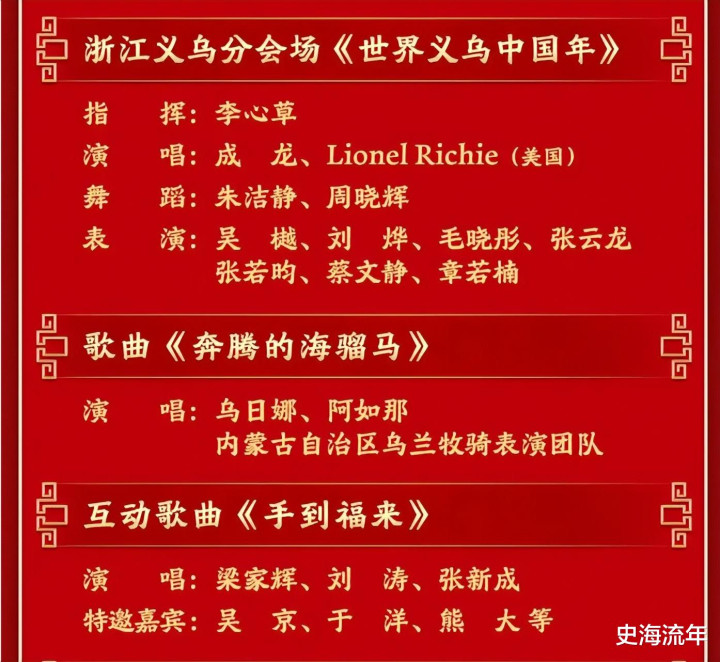 四地分会场各美其美,描绘神州壮阔图景。 黑龙江省哈尔滨分会场的《冰雪暖世界》,在冰天雪地中奏响交响乐,跳起芭蕾舞,宋佳、韩庚等演员与冰雪运动员共同展现北国的火热豪情。浙江义乌分会场的《世界义乌中国年》,在“世界超市”的实景中,由成龙携手美国传奇歌手莱昂纳尔·里奇(Lionel Richie)同台献艺,吴樾、张若昀等演员载歌载舞,彰显中外文化交融、买卖全球的开放气象。